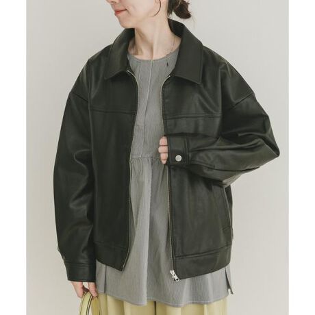 リアルな質感にこだわったフェイクレザー素材のZIP UPブルゾン。ほどよいツヤ感がスタイリングを引き締め、カジュアルになりすぎず大人な印象に仕上がります。さっと羽織れる軽さとバランスの取りやすいシルエットで、どんなアイテムまで幅広く相性◎。シーズンの変わり目に活躍する、トレンド感と着回し力を兼ね備えた一着です。