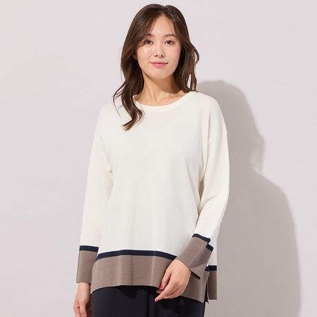■ミニマルシルエットにトリカラーが映えるニットプルオーバー■
