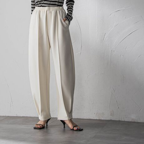 センターラインや裾タックを効かせることで、ラフになりすぎず、楽にきれいを叶える一本。