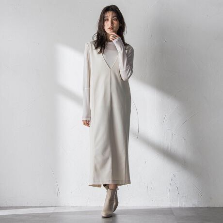 マルイウェブチャネル   /   メイソングレイ   /   ワンピースドレス   /   ワンピース   /   【えらべるSET UP】叶えるVネックジャンパードレス≪手洗い可能≫