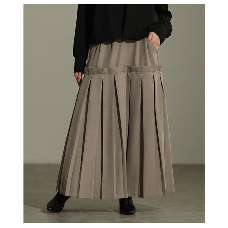 【スカート】 レディース ボトムス プリーツ ロング 無地 フェミニン グレージュ ブラウン