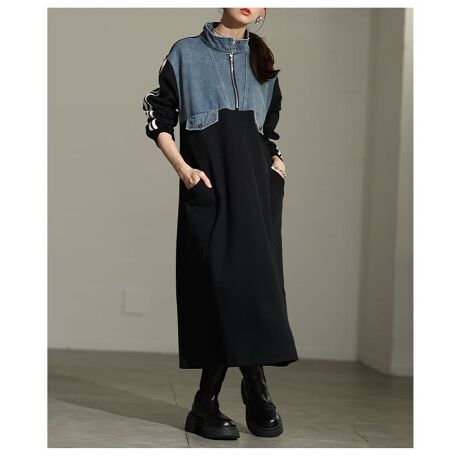 デニムをドッキングした、ひと味違うスウェットワンピース。スポーティーな中に遊び心が効いていて、人と差がつくデザインです。スウェット素材で着心地もラクだから、気負わず楽しめる一枚です☆
