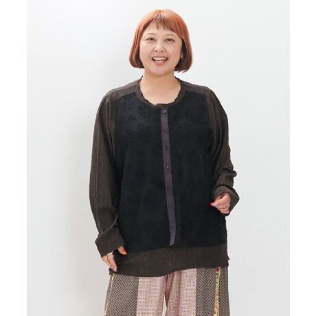 レースベストを叩き付けた、レイヤード風デザインのプルオーバー。