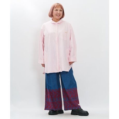 シンプルな形のシャツを、パキっと映えるストライプ柄で仕上げました。