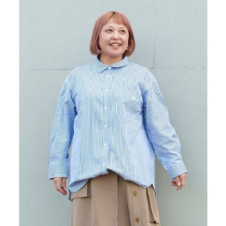 シンプルな形のシャツを、パキっと映えるストライプ柄で仕上げました。