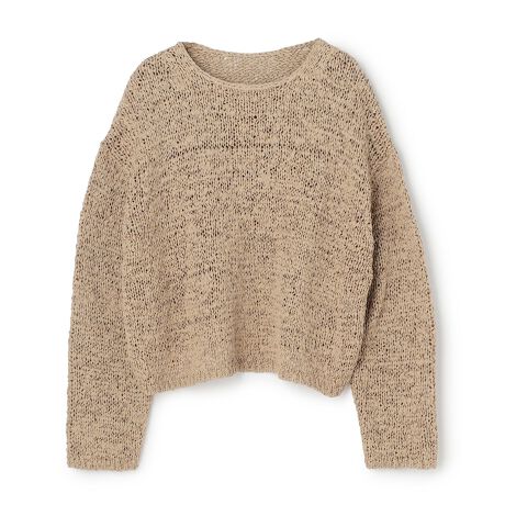 ■デザインドロップ天竺でざっくりと編まれた1枚で着映えするクルーネックのプルオーバー。衿ぐりはかぎ針編みトリミングで、シンプルに仕上げました。クロップド丈と、リラックス感のあるルーズなシルエットでこなれ感を演出します。インナーにタンクトップやキャミソールを合わせると、程よい肌見せでヘルシーな印象に。