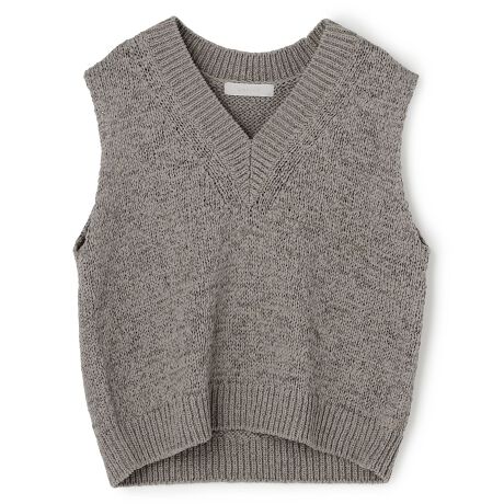 ■デザイン顔まわりをすっきりと見せる、深くシャープなVネックのニットベスト。カットソーやシャツ、ワンピースなどのレイヤードスタイルもお楽しみいただけます。夏はタンクトップやキャミソールをインナーに合わせ、ノースリーブでもご着用いただけます。
