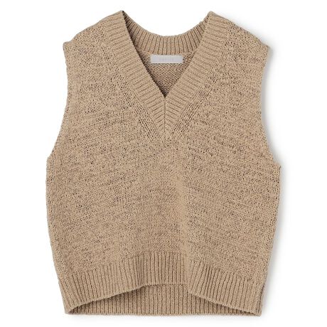 ■デザイン顔まわりをすっきりと見せる、深くシャープなVネックのニットベスト。カットソーやシャツ、ワンピースなどのレイヤードスタイルもお楽しみいただけます。夏はタンクトップやキャミソールをインナーに合わせ、ノースリーブでもご着用いただけます。