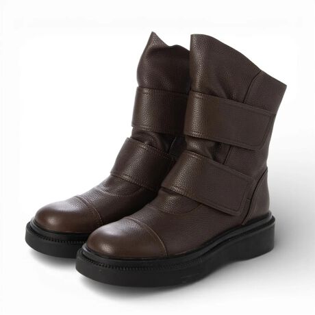 都会的なムードを纏う、ベルクロデザインのハイカットブーツが登場。柔らかなシュリンクレザーを贅沢に使用し、足を包み込むようなフィット感とラグジュアリーな質感を両立しました。特徴的なワイドベルクロは、デザイン性の高さに加えて着脱のしやすさも抜群。サイドラインまで流れるように入ったステッチワークが、シンプルな中にもモードな立体感を引き立てます。厚みのあるソールは軽量で、長時間の着用でも疲れにくい仕様。スリムなパンツからワイドパンツ、スカートまで幅広く合わせられ、コーディネートに“エッジ”を添える主役級ブーツです。