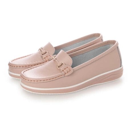 清潔感あふれるオールホワイトが魅力の、軽やかローファー。やわらかい牛革と、足にやさしくフィットする設計で、長時間の歩行も快適にサポートします。シンプルな中にも、フロントのホースビットデザインが程よいアクセント。スリッポンタイプで着脱もスムーズ。デイリーにもきれいめコーデにもマッチする、使い勝手のいい一足です。特徴:?爽やかでクリーンなホワイトカラー?足あたりのやさしい柔らか素材?安定感のある軽量ソール&低反発クッションインソール?脱ぎ履きしやすいスリッポン仕様?通勤・通学からお出かけまで幅広く活躍こんな人におすすめ:?毎日履ける、やさしい履き心地の靴を探している方?清楚で上品な足元を演出したい方?きれいめカジュアルが好きな方