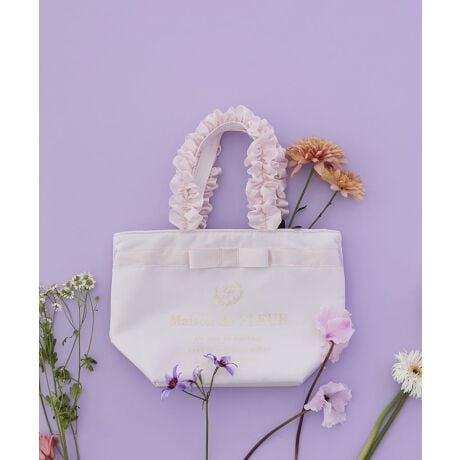 \2026 Spring Collection/サテン生地にゴールドの箔プリントとリボンラインが華やかなトートバッグ。