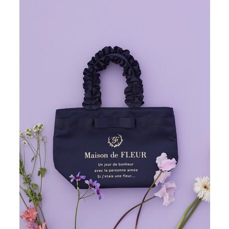 \2026 Spring Collection/サテン生地にゴールドの箔プリントとリボンラインが華やかなトートバッグ。