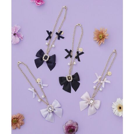 ゴールドのチェーンに散りばめたプチリボンがキュートなアクセントをプラスします。