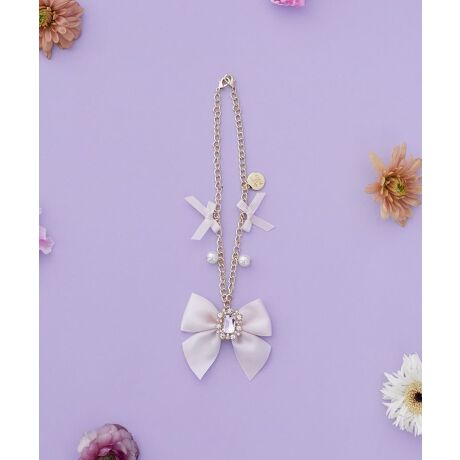 ゴールドのチェーンに散りばめたプチリボンがキュートなアクセントをプラスします。
