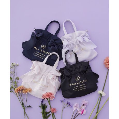 サテン生地にゴールドの箔プリントが上品なミニトートバッグ。