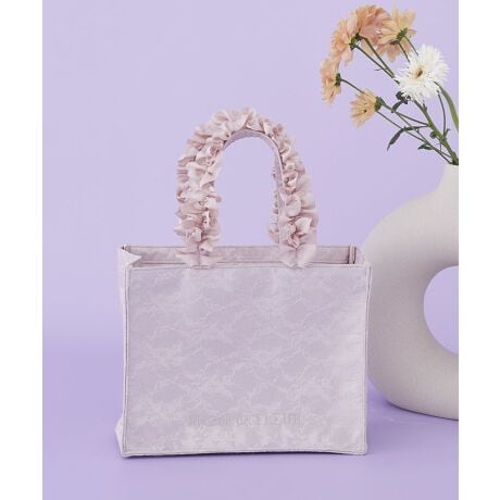 \2026 Spring Collection/上品なサテン生地に繊細なレースを重ねたスクエアトートバッグ。