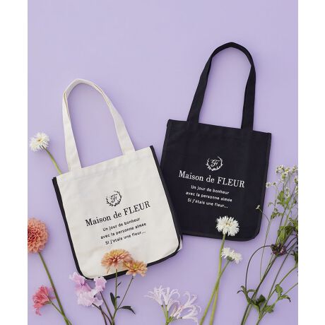キャンバス生地にブランドロゴの刺繍を施したスクエアトートバッグ。