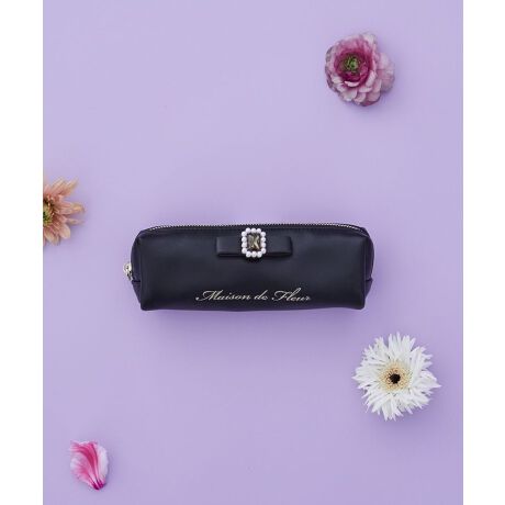 煌めくパールビジューと立体的なリボンで可愛く仕上げた、大人気のロングポーチ。