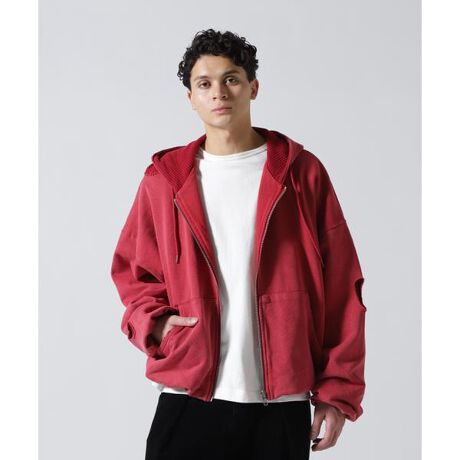 袖・裾共に内側にリブになっているので、丸みのある立体シルエットが印象的なジップパーカー。