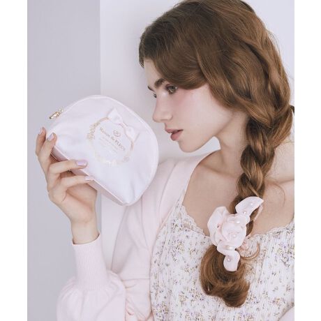 \2026 Spring Collection/サテン生地にゴールドの箔プリントとミニリボンが華やかなラウンドポーチ。