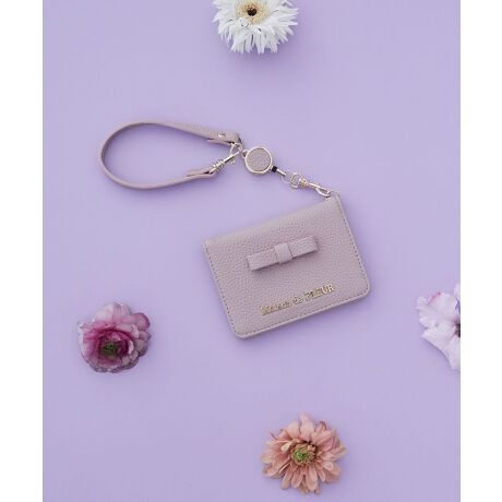 \2026 Spring Collection/型押しのレザー調素材に、リボンとゴールドロゴが映える二つ折りパスケース。