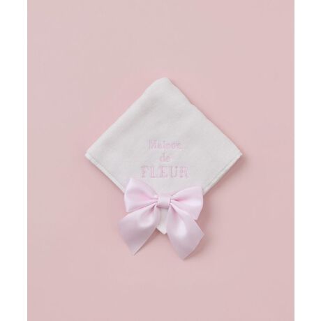 大きなサテンリボンがアクセントになったタオルハンカチ。