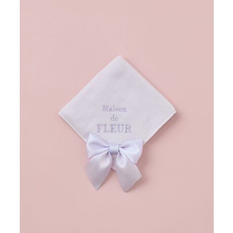 大きなサテンリボンがアクセントになったタオルハンカチ。