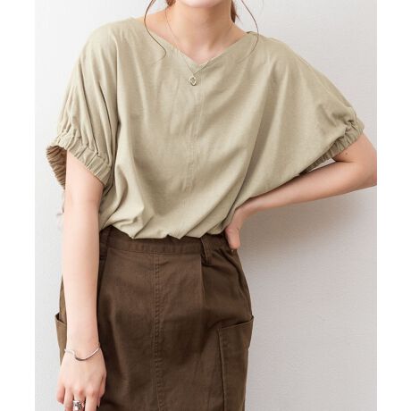 ギャザースリーブTシャツ