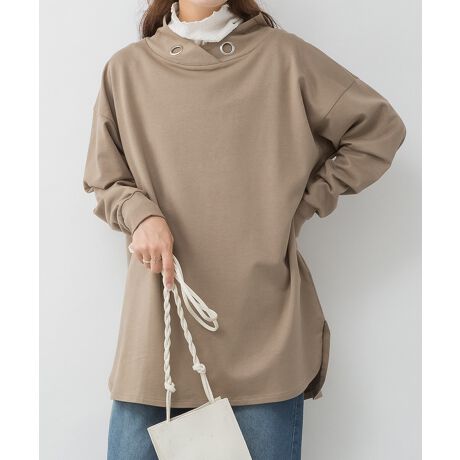 aity アイティ 襟に大き目のアイレットが付いたハイネックプルオーバー。