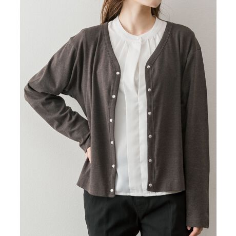 カーディガンとして羽織るのはもちろん、ボタンを適度に留めてトップスとして着用するのも◎