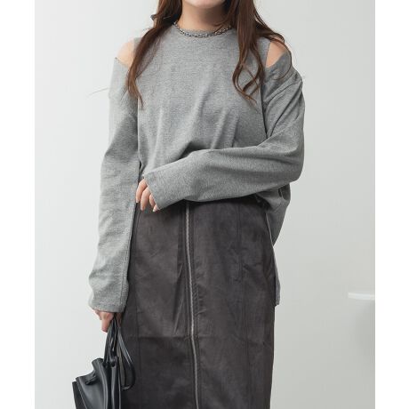 aity アイティ 肩部分にスリットが入ったデザインでさりげない肌見せが魅力的なオフショルダーのスタイルを演出するカットソーです。
