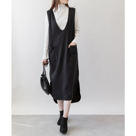 aity アイティ ミニ裏毛素材のVネックロングベストです。