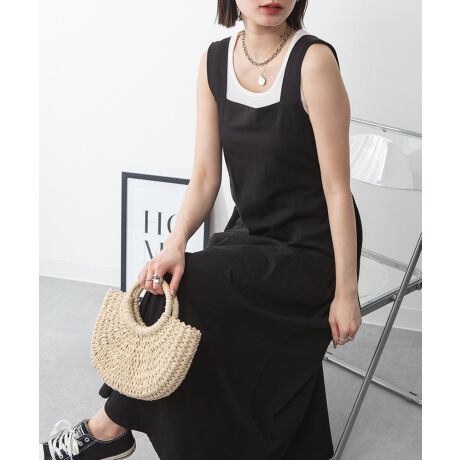 太めの肩紐がデザインポイントのワンピースはシンプルでありながらも上品な印象を与えるデザインです。