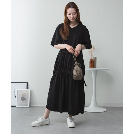 aity アイティ 女性らしい抜け感を生み出すドロストシャーリングVネックワンピース