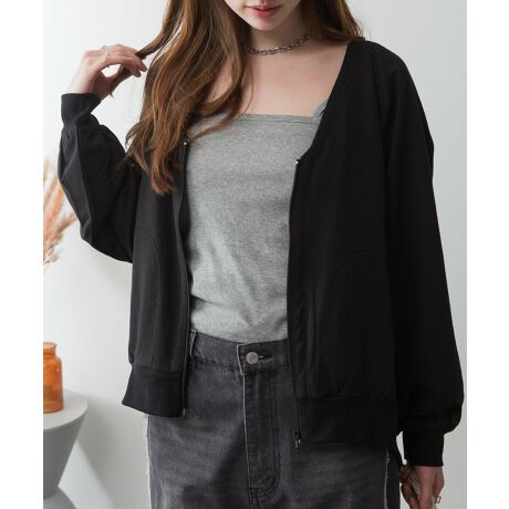 ミニ裏毛Vネックジップカーディガン