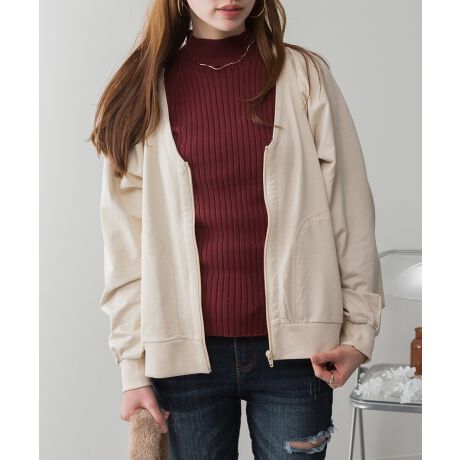 ミニ裏毛Vネックジップカーディガン