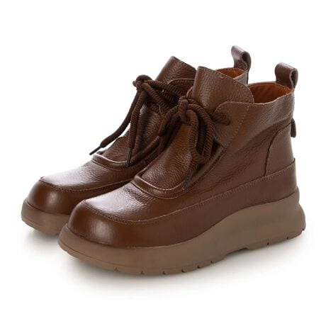 <!--完了-->軽さと柔らかさにこだわった、デイリーに使えるスニーカーブーツ。<br>上質なシボ感のあるソフトレザーを使用し、足を優しく包み込むようなフィット感を実現しました。<br><br>ふっくらと立体的なアッパーと、大きめのシューレースが可愛らしくもモードな印象。<br>見た目より驚くほど軽量で、厚みのあるアウトソールが衝撃をしっかり吸収し、長時間歩いても疲れにくいのが魅力です。<br><br>内側はふわっとした足当たりで、寒い時期の防寒にも◎<br>カジュアルからキレイめまで、幅広いスタイルに合わせやすい万能デザインです。<br><br>特徴<br>・上質シボレザーの柔らかな足当たり<br>・スニーカー感覚で履ける超軽量ソール<br>・厚底風ボリュームソールで安定感&美脚効果<br>・大きめのシューレースがアクセント<br>・足首までしっかりフィットし冬にも快適