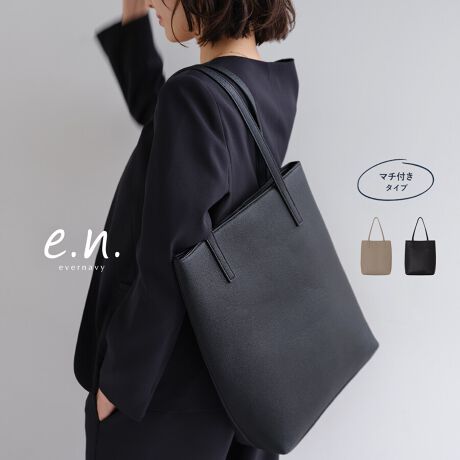 マチ付き フェイクレザー トートバッグ evernavy エバーネイビー