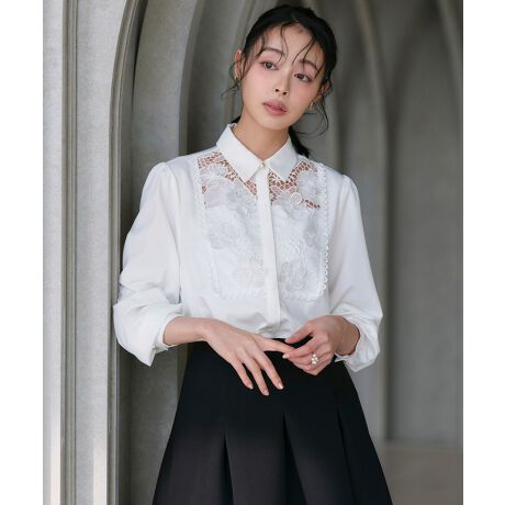 2つ目以降のボタンはフラワーレースを引き立てる比翼仕様。