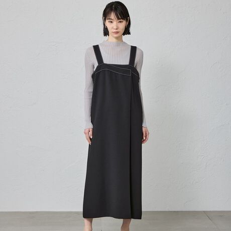 レイヤードしたようなアシンメトリーなデザインのジャンパースカート。