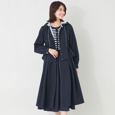 ウエスト内側の釦を外すことで、マルチなスタイルが楽しめます。ショートブルゾンはボリュームスカートやパンツと好相性で、バランスの取りやすいシルエット。