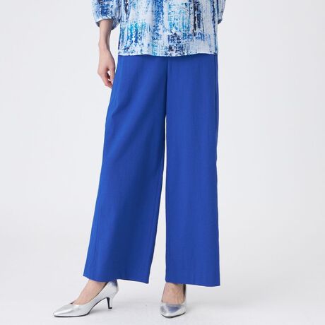 多機能素材で快適な履き心地です。脇のタックの中縫いを長くして、タックの膨らみを軽減しているので、イージーな履き心地ながらウエスト周りがすっきり見えます。ウエストの切り替えがアクセントになっています。