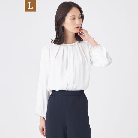 【L】【ウォッシャブル】バックサテンジョーゼットブラウス