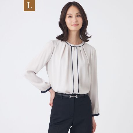 【L】【ウォッシャブル】バックサテンジョーゼットブラウス