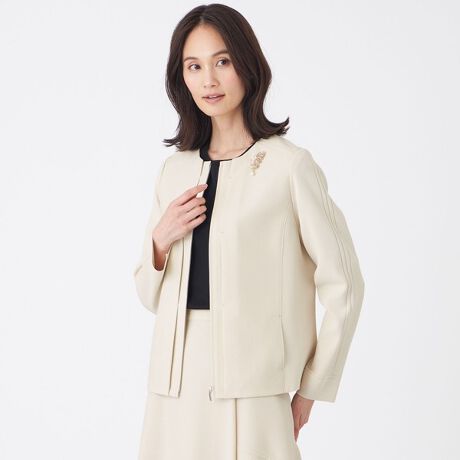 パネルラインでより立体的なシルエットを構築し、ジャケット要素をより強くしたアウターです。前中心の切り替えは、立体的なディティールでデザインポイントです。袖と後身頃のパネルパーツは、総針組織できれいめな見え感とニットならではストレッチ性が快適な着心地です。