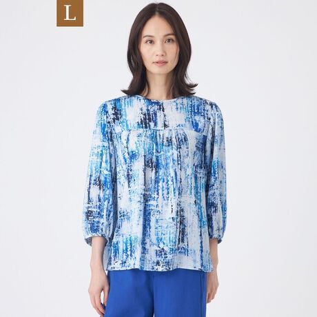 【L】【ウォッシャブル】スプラッシュプリントブラウス