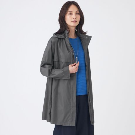 取り外しフード付きのミドル丈の花粉対策コートです。