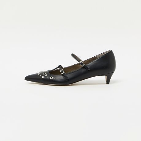 辛口なスタッズを効かせつつ、華奢な2本のスラップとキトゥンヒールを合わせて上品なバランスに仕上げました。