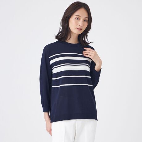 Tシャツのような気軽さと、ニットらしい上品な雰囲気を併せ持った七分袖のプルオーバーです。