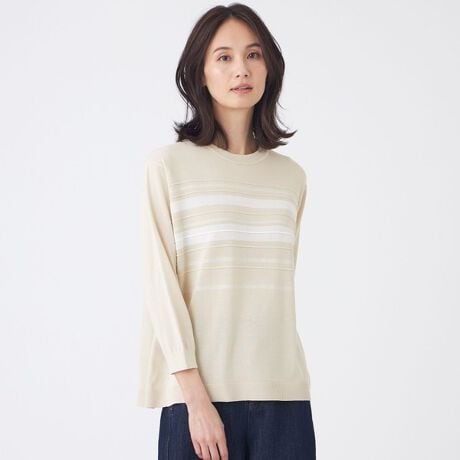 Tシャツのような気軽さと、ニットらしい上品な雰囲気を併せ持った七分袖のプルオーバーです。